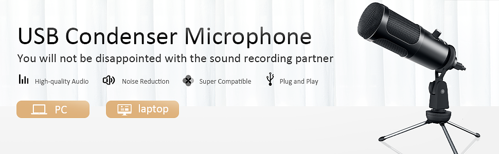 The USB recording microphone offers high-quality sound recordings, for broadcasting, a musical recording, conference call, instruments, interviews, video conference, gaming, online chattings, etc. work with any recording software or communication platform, such as YouTube, Podcasts, WeChat, Facebook, etc, you don't have to download special drivers or tools.