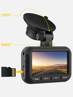 Installez simplement la caméra de tableau de bord sur le pare-brise à l'aide du support à ventouse et branchez-la sur la prise allume-cigare, elle commencera à enregistrer avec le moteur de la voiture allumé.