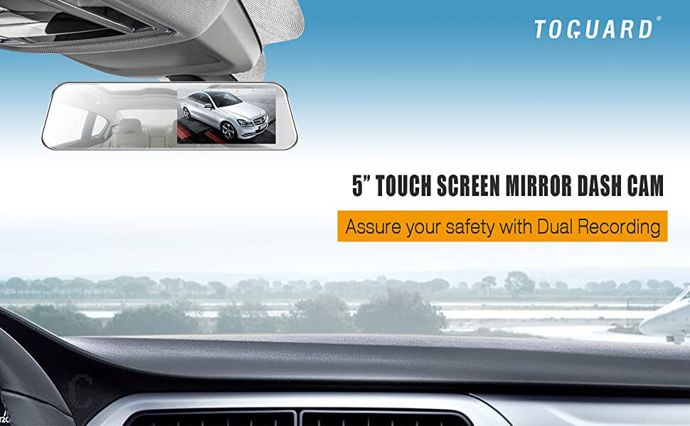 Caméra de recul TOGUARD 5" LCD Mirror Dash Cam Caméra de rétroviseur Écran tactile ultra-mince Full HD 1080P Dash Cam avant et arrière Double objectif avec caméra arrière étanche