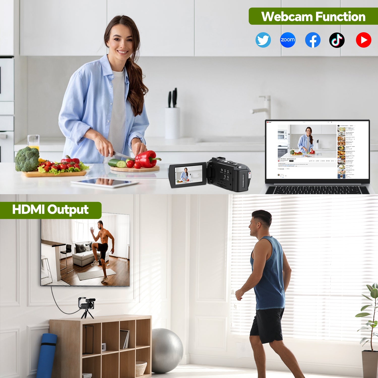 Transform your camcorder into a webcam for seamless video chats and live streaming. Connect to your TV via HDMI and share your memories with loved ones. With WiFi functionality, sharing becomes a breeze.