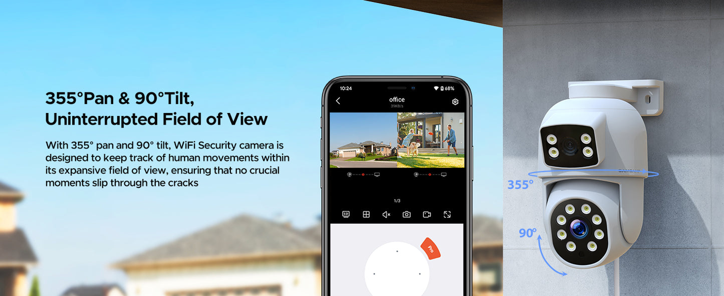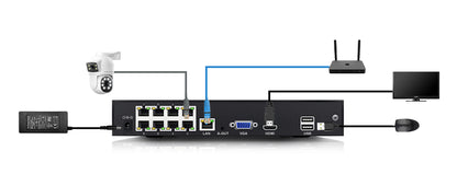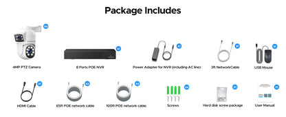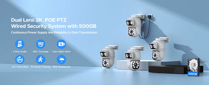 Never Miss a Detail! Unlike traditional home security camera system, our poe camera features dual lenses—one fixed wide-angle lens for 24/7 monitoring and a PTZ lens for tracking movement. This CCTV camera security system ensures zero blind spots, covering larger areas with precision.